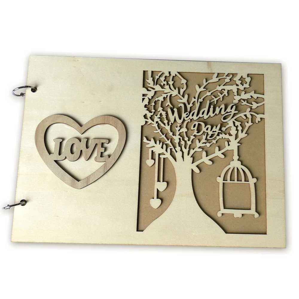 Bridal Engagement Present Wedding Decor Handmade Love Wedding Guest Book Wooden Diy Signature Sign In Book With Ribbon