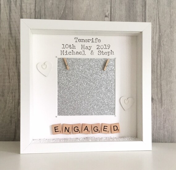 Details About Personalised Deep Box Frame Scrabble Word Art Engagement Present Hearts Gift