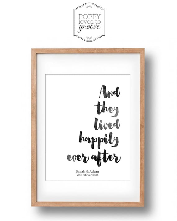Happily Ever After Printable Personalised Engagement Gift Watercolour Art Print Wedding Gift Engagement Present Digital File