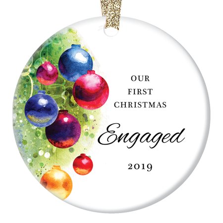First Christmas Engaged Ornament 2019 Ceramic Collectible Gift Idea 1st Holiday Engagement Present For Future Bride Groom Marriage 3 Flat Porcelain