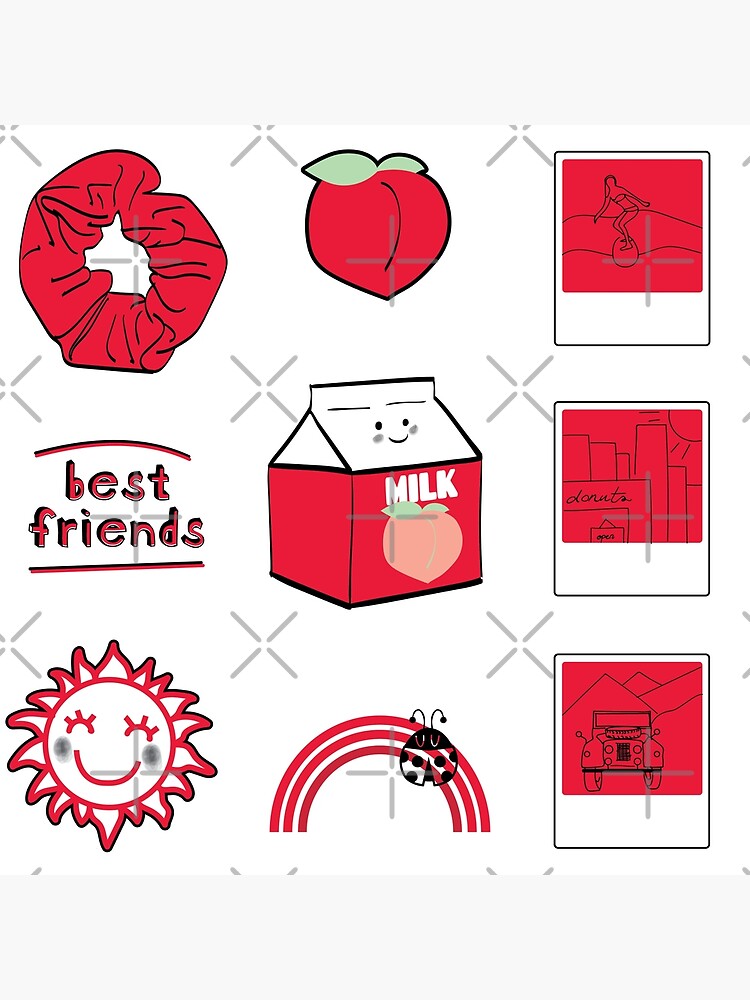 Red Best Friends Aesthetic Sticker Pack Poster