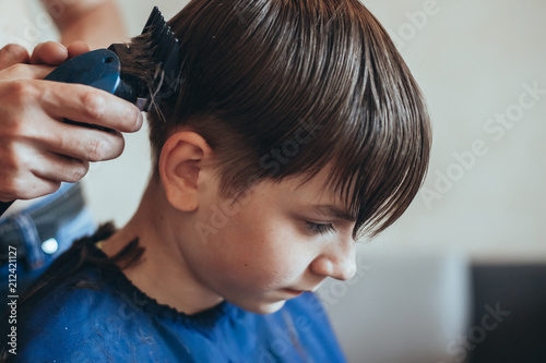 Young Boy Getting His Hair Cut Clippers Tapering The Sides Of