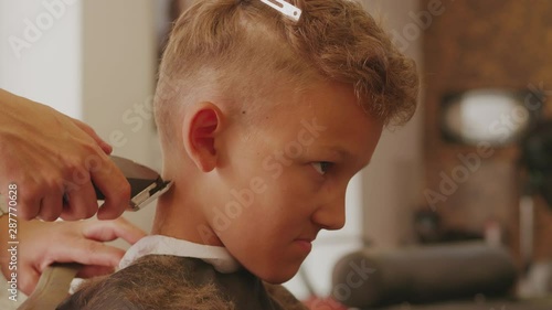 Hairdresser Does A Haircut With Clipper For The Boy Buy