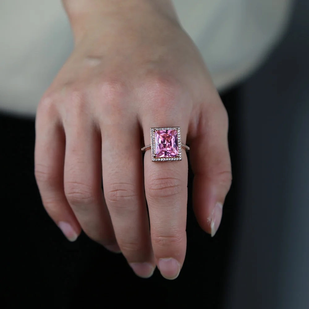 2019 Pink Big Stone Wedding Engagement Ring For Women Rose Gold Pink Princess Cut Cubic Zirconia Finger Rings From Haoyunduo 42 78 Dhgate Com