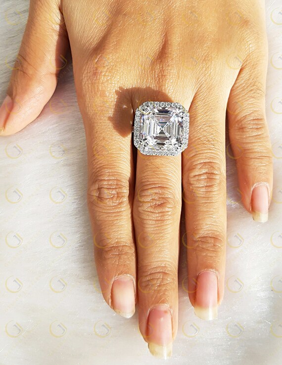 Cocktail Engagement Ring Asscher Cut Women Ring Big Stone Ring 925 Sterling Silver Gift For Her