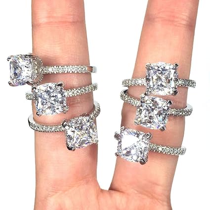 Princess Cut Diamond Promise Ring White Cubic Zirconia Large Stone