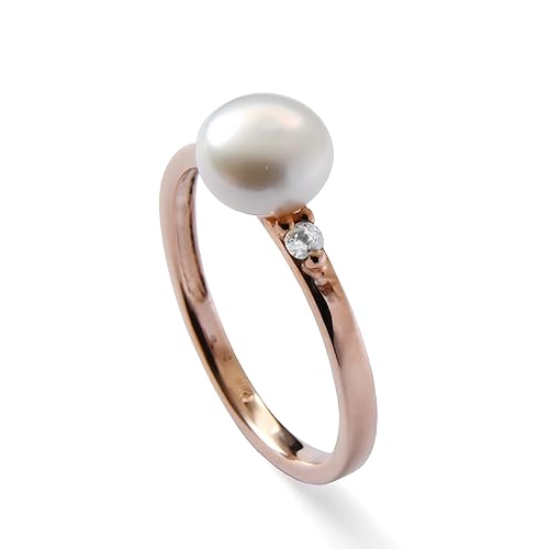Amazon Com Pearl And Diamonds Gold Ring 14k Rose Gold